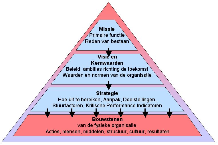 Uw bedrijf Uw bedrijf heeft natuurlijk een missie, een reden van bestaan, een werkterrein, een betekenis voor belanghebbenden; kortom, een primaire functie. Naast een missie heeft uw bedrijf natuurlijk ook een visie, een beeld van wat we willen zijn. Een visie is specifiek, ook daar waar het gaat over normen en waarden. Hoe u naar dat toekomstbeeld, uw visie, wilt groeien heeft u vastgelegd in uw strategie.